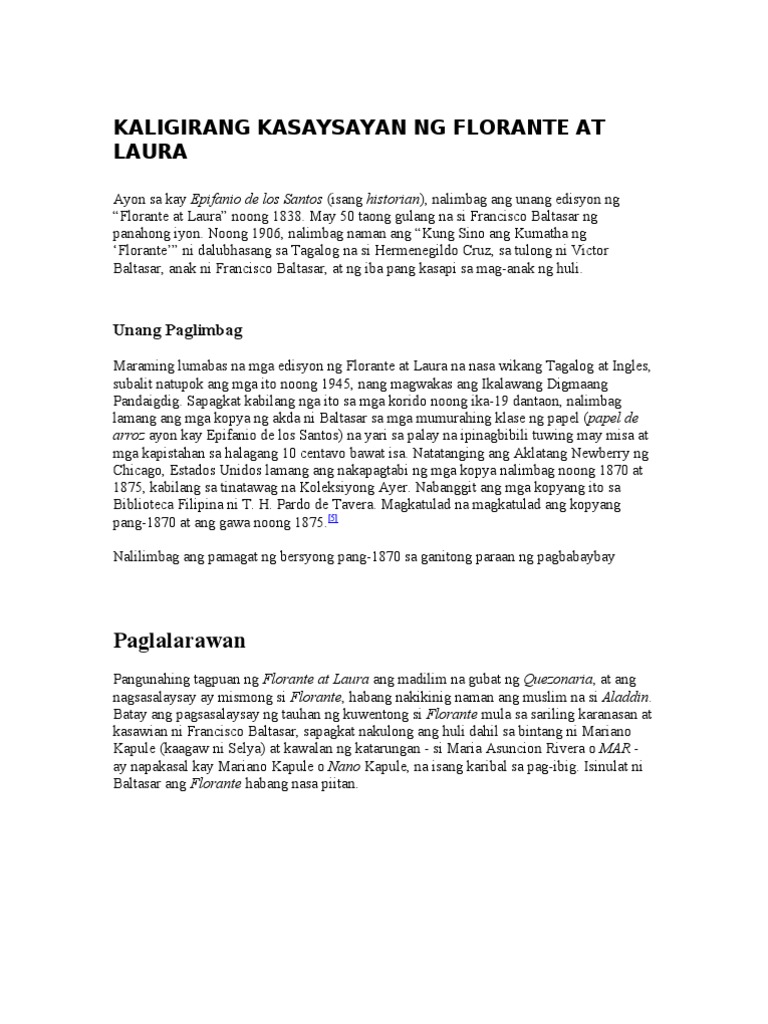 Kaligirang kasaysayan ng florante at laura 1. Laura ng kanyang kaaway na si naging lubos ang. The remaining files will be uploaded soon.