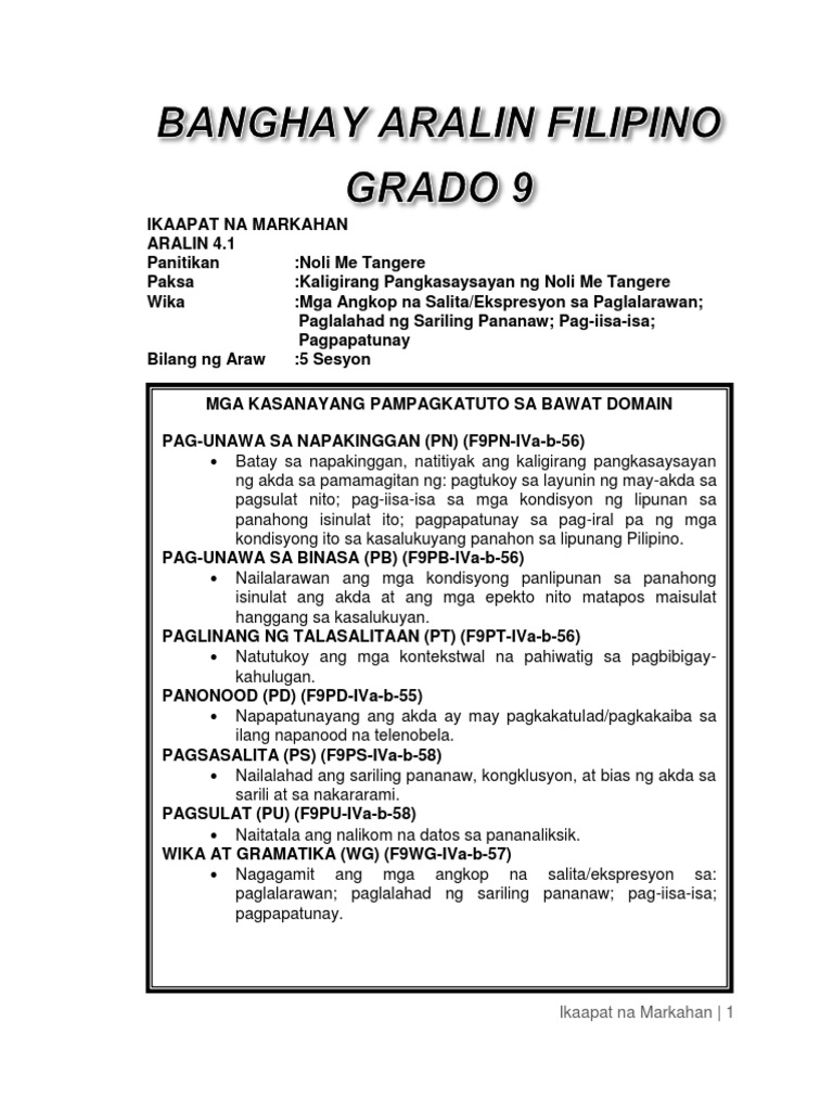 May 50 taong gulang na si Francisco Baltasar ng panahong iyon. We are still on the process of uploading GRADE 8 Learners Materials. Ito ay naglalaman din ng paksa hinggil sa mga samut saring kaalaman ukol sa Panitikan at sa mga pamamaraan sa pagsusuri ng akdang pampanitikan.