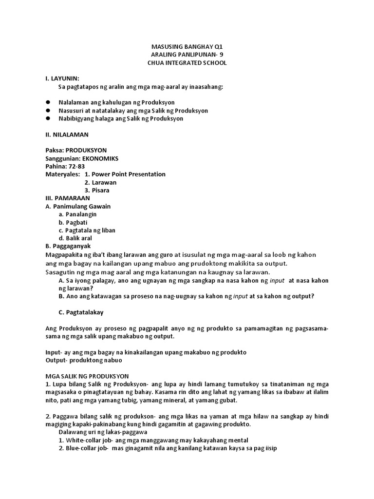 Samakatuwid kailangan ang mga manggagawa upang mabuo at matapos ang isang kalakal at serbisyo. Ang paggawa ay tumutukoy sa pag likha ng mga produkto at serbisyo na nakakapagpasiya sa mga pangangailangan ng tao upang mabuhay Bilang salik ng produksyon ito ay nangangahulugan ng pag gamit ng lakas ng tao exertion of human. PRODUKTO OUTPUT SANGKAP INPUT PANDESAL INGRIDIENTS all-purpose flour bread flour active dry yeast whole milk kosher salt unsalted butter granulated sugar large eggs bread crumbs.
