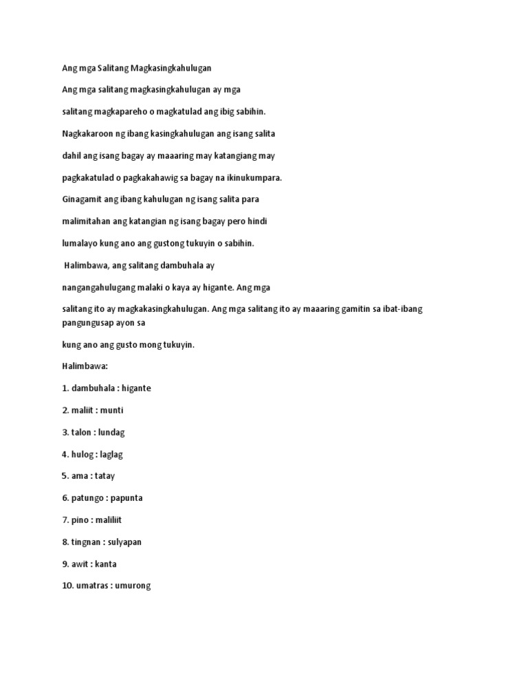 For worksheets on Filipino synonym pairs and. Magbigay ng 30 halimbawa ng magkasalungat na salita. Ginagamit ang rin at raw sa mga sumusunod na pagkakataon.
