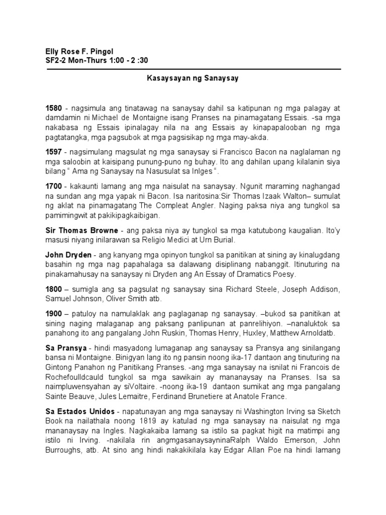 Ano Ang Kasaysayan Ng Sanaysay Sa Pilipinas