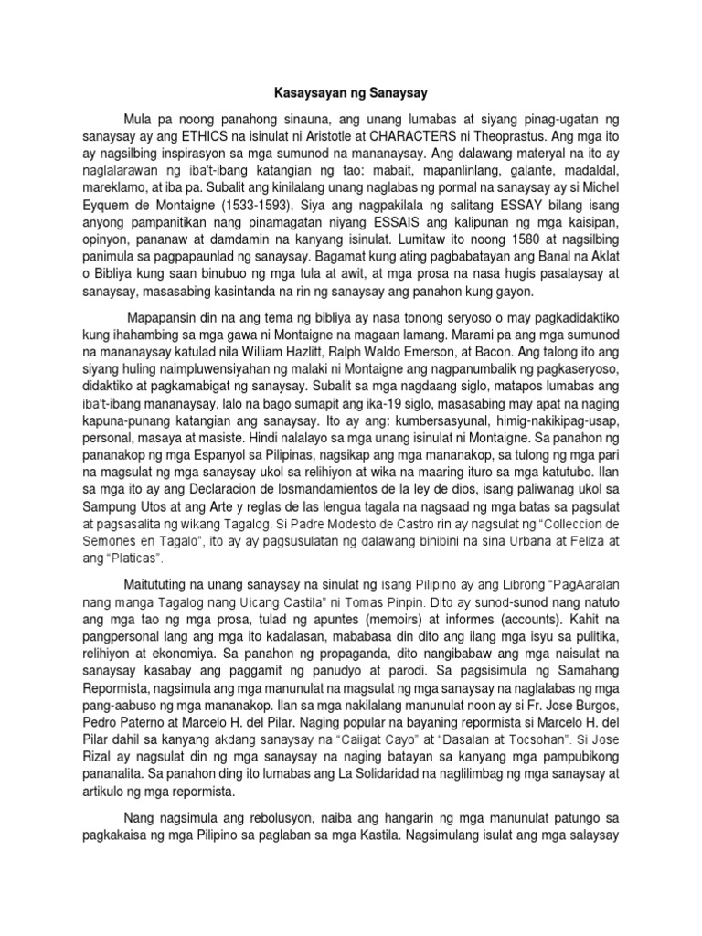 Sanaysay tungkol sa kasaysayan ng pilipinas Essays and Research Papers. Mas nauna pa sa pahayagn sa Amerika. Makalipas ang ilang taon ay nakarating ito sa Inglatera at.