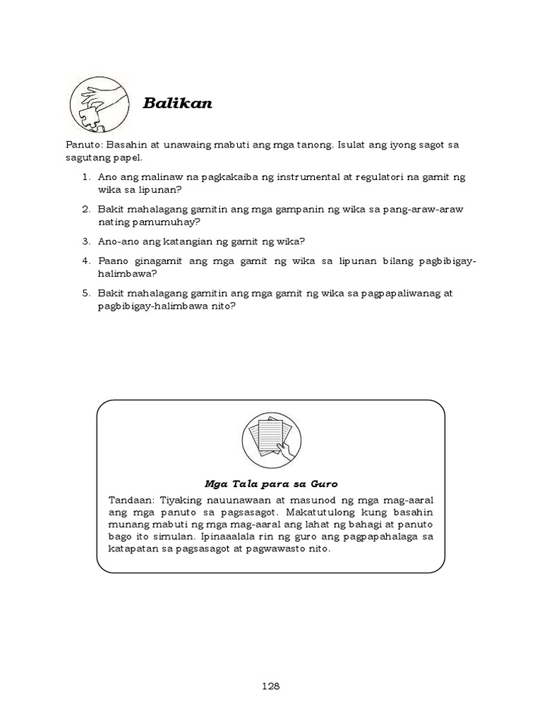 Mga Tala para sa Guro Tandaan. Makatutulong kung basahin munang mabuti ng mga mag-aaral ang lahat ng bahagi at panuto bago ito simulan. Ano-ano ang katangian ng gamit ng wika.
