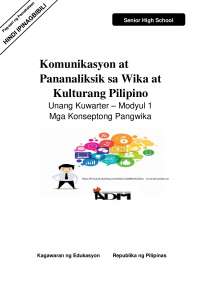 Konseptong Pangwika 1. F11PD-Ib-86 Naiuugnay ang mga konseptong pangwika sa sariling kaalaman pananaw at mga karanasan. Kinatawan ng KWF at ng.