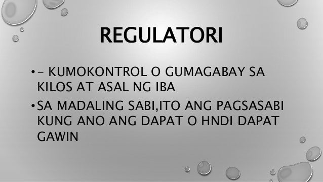 Kaya dapat matuto tayong makiisa o makipagkapwa sa. Sa ganitong prinsipyo mahalaga ang potensiyal sa pagpapakahulugan batay sa konteksto at gamit. Regulatori- kumokontrol o gumagabay sa kilos at asal ng iba4.