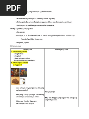 Lesson Plan Kaligirang Pangkasaysayan Ng El Fili Pdf