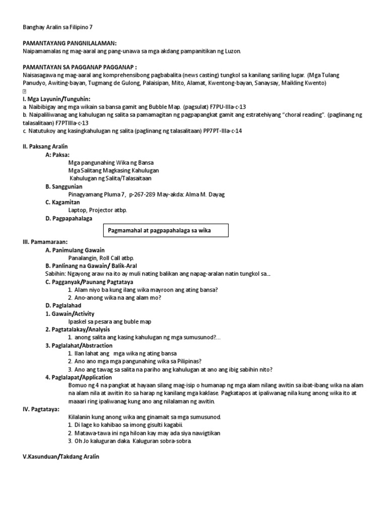 Sample Banghay Aralin Sa Filipino 7 Pdf