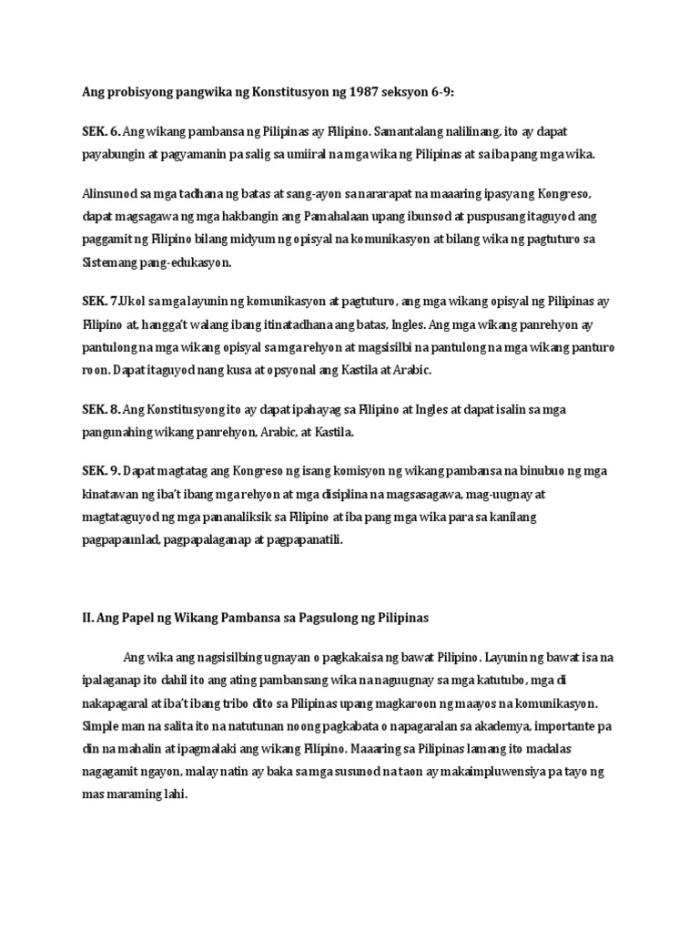 1987 KONSTITUSYON NG PILIPINAS PDF - Artikulo XIV seksiyon 6 9 ng Bagong Saligang Batas Filipino ang Corazon C. Filipino rin ang opisyal na wika sa bansa. Article 18 section 3.